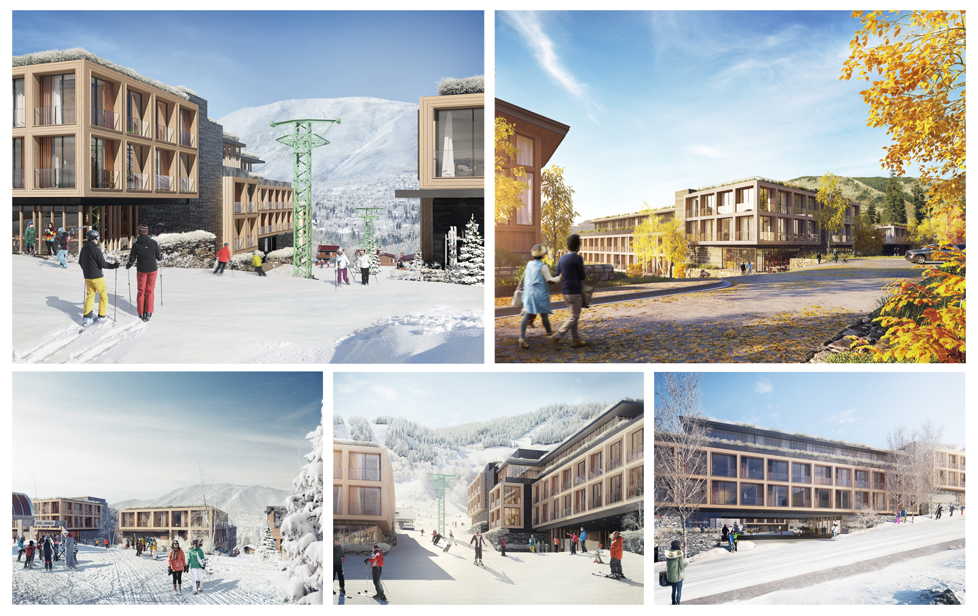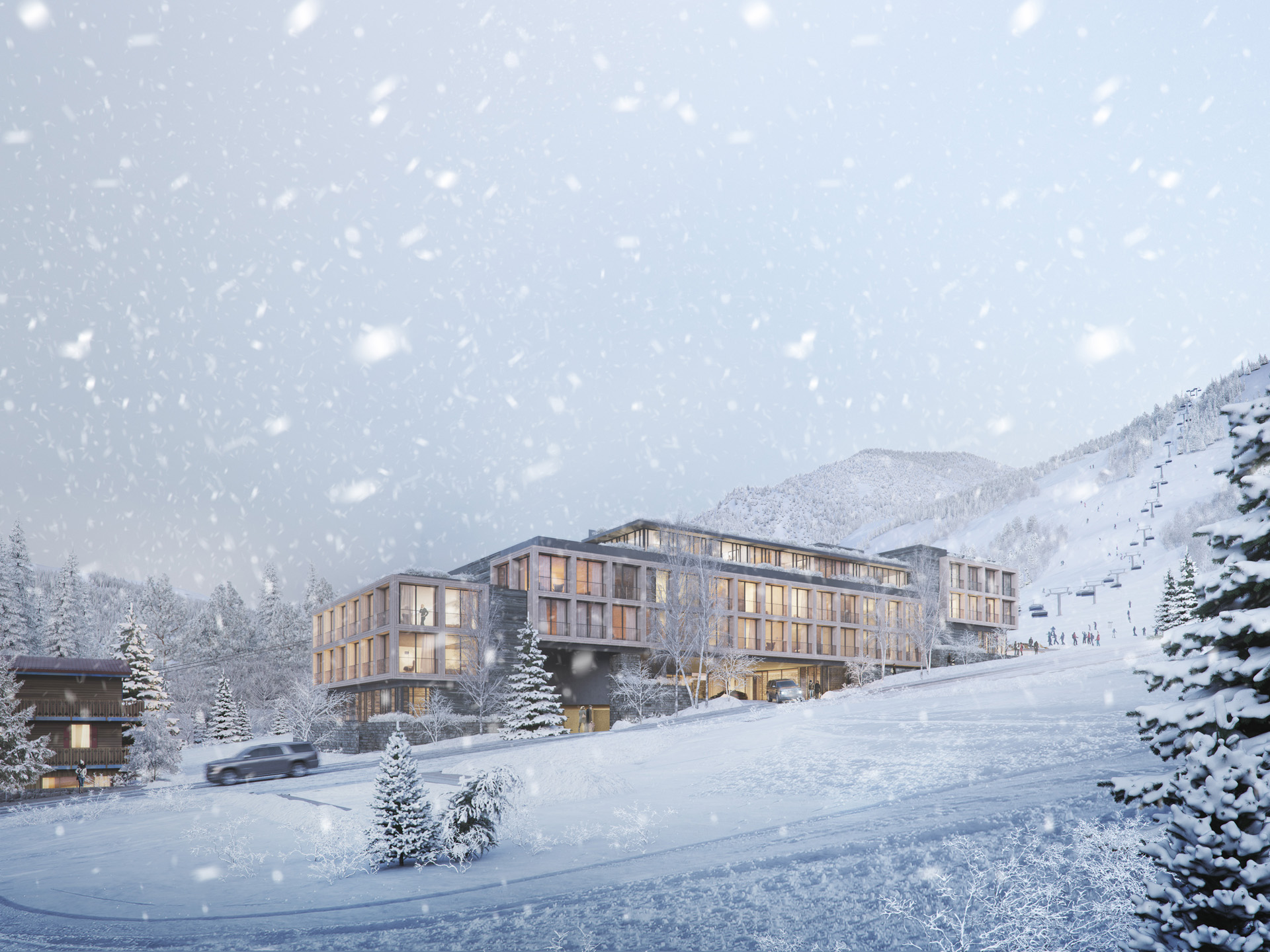 Diese entwurfsbegleitenden Renderings bebildern die Neuplanung eines Wintersporthotels gelegen am Ortsrand von Aspen (Colorado), in unmittelbarer Nähe zur Liftstation. Neben der Architektur galt es, die topographische Einbindung des Ensembles und natürlich die umgebende Landschaft des Resortortes in Szene zu setzen. Teil der Aufgabe war es auch, das Gebäude in unterschiedlichen Tages- und Jahreszeiten zu zeigen.