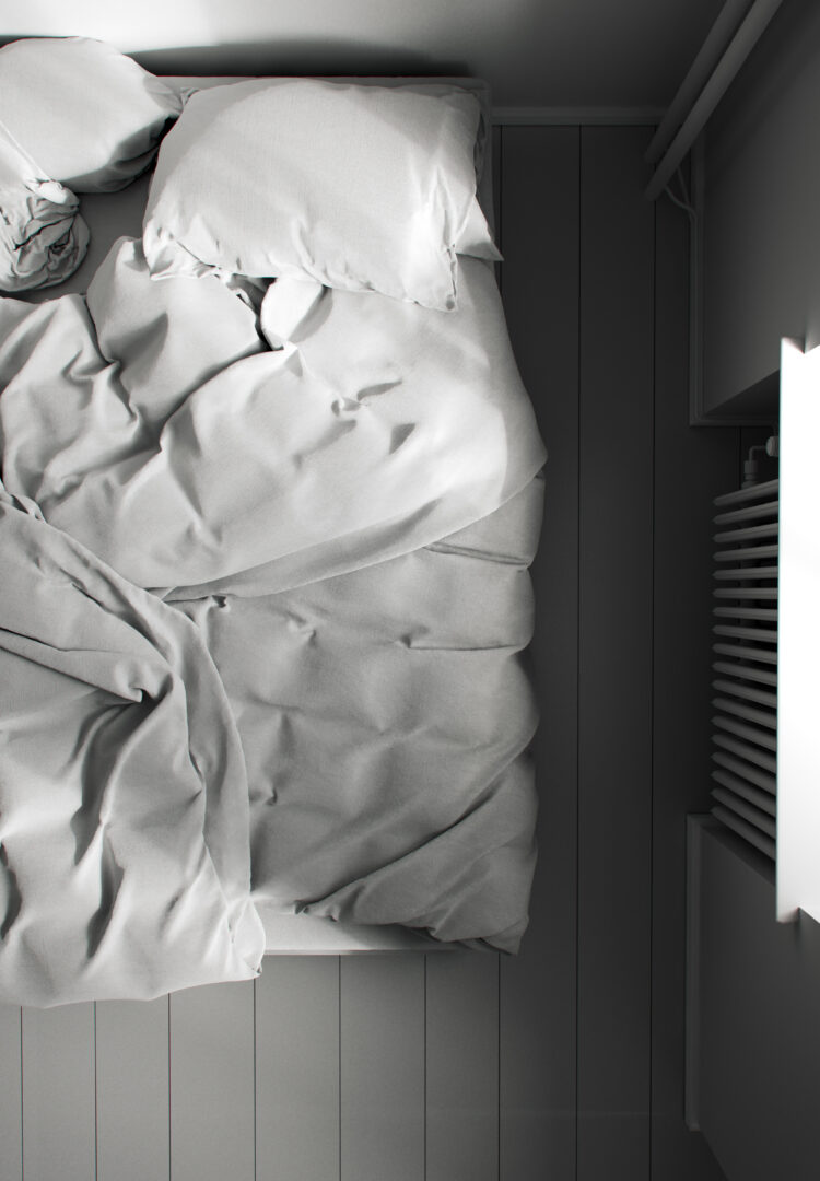 Visualisierung einer minimalistischen Berliner Altbauwohnung