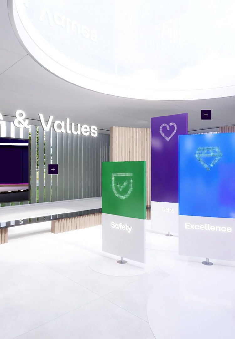 Von der ersten Raumskizze bis zum finalen Launch stecken wir unser Herzblut in die virtuelle Ausstellung. Konzeptionell reflektiert der Pavillon die neue CI des Konzerns, bietet ebenso für den virtuellen Rundgang Orientierbarkeit und Flexibilität. Am Stichtag präsentiert sich der Pavillon simultan 17.000 Brenntag Mitarbeiter:innen, die weltumspannend die neue Marke feiern.