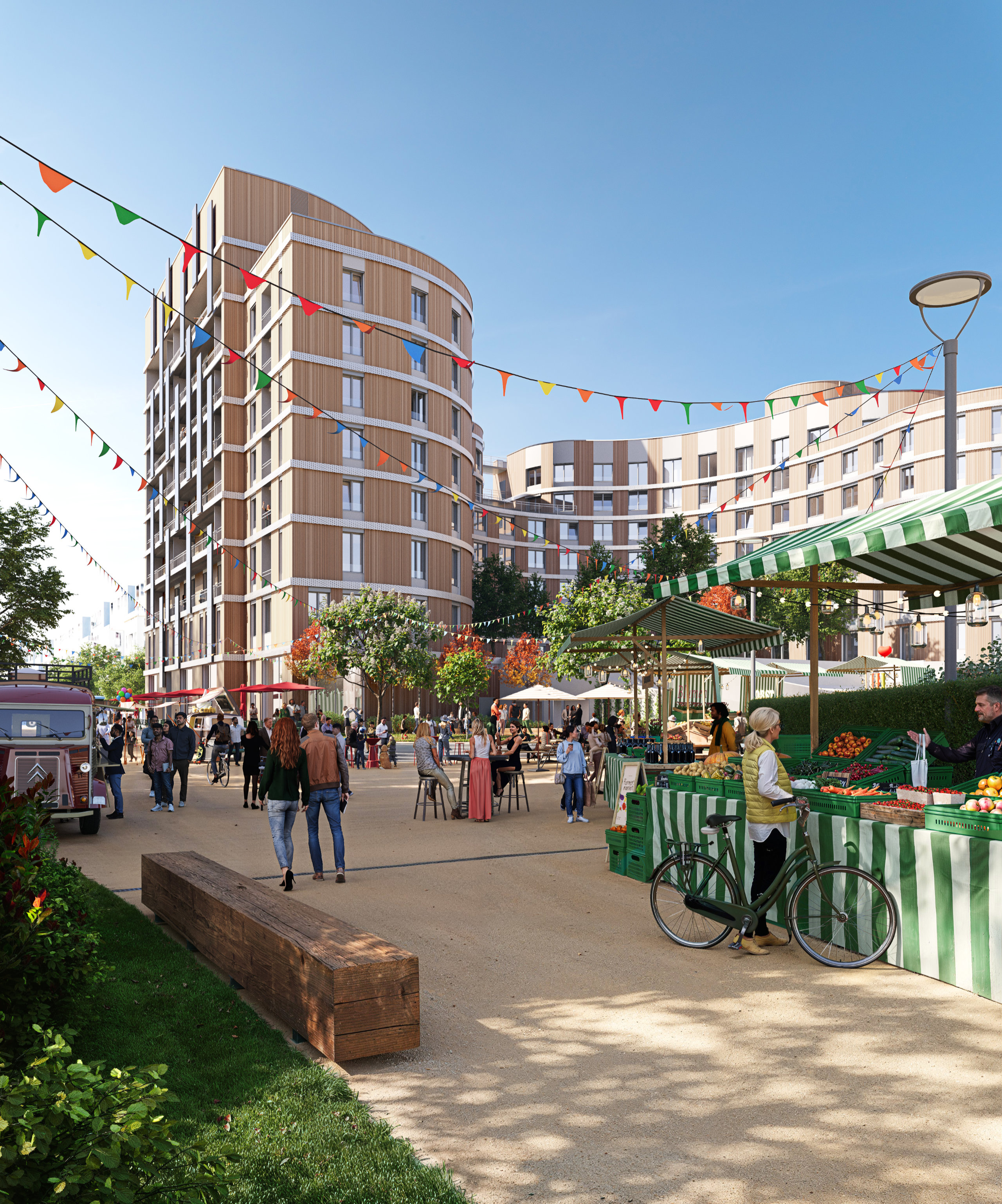 Lebenswerk-Stadt represents a vibrant microcosm for people in the midst of life — colorful, social, and sustainable. Our visualizations tell exactly that story. It was inspiring to see these themes reflected in the urban design of the new district and to capture their full breadth visually.