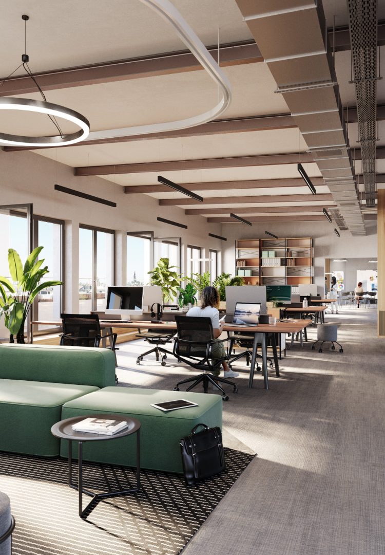 In this case, our focus was on the interior design. The redesign by Bollinger and Fehlig can be seen in the events space, open office, flexible work areas, and interactive recreation spaces within a prestigious office building.