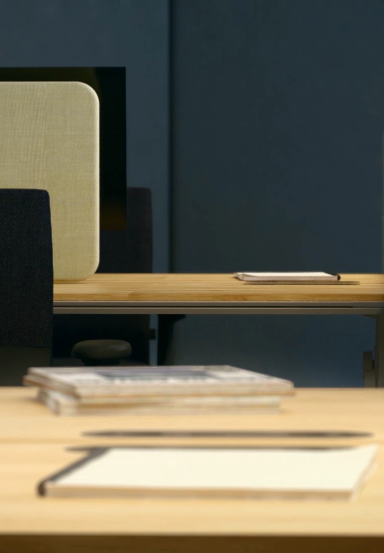 From lampshades to coat racks – with their office design for Erste Campus (Henke Schreieck Architects), Kinzo crafted a workspace that balances focus and relaxation. Soft textile surfaces complement a calming colour palette and a well-thought-out layout.