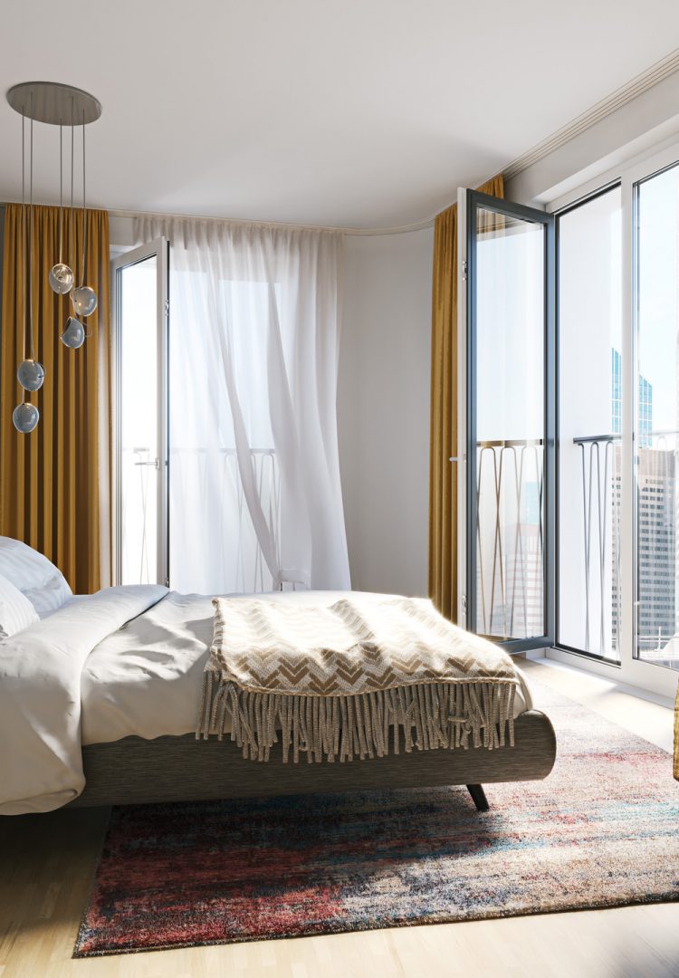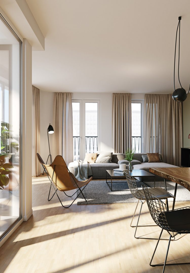 The planned residential and commercial building offers urban living in the center of Frankfurt. The task was to reflect on the pictures of the interior the quality of living not only by modern and stylish features but also including proximity to downtown Frankfurt and the Main.