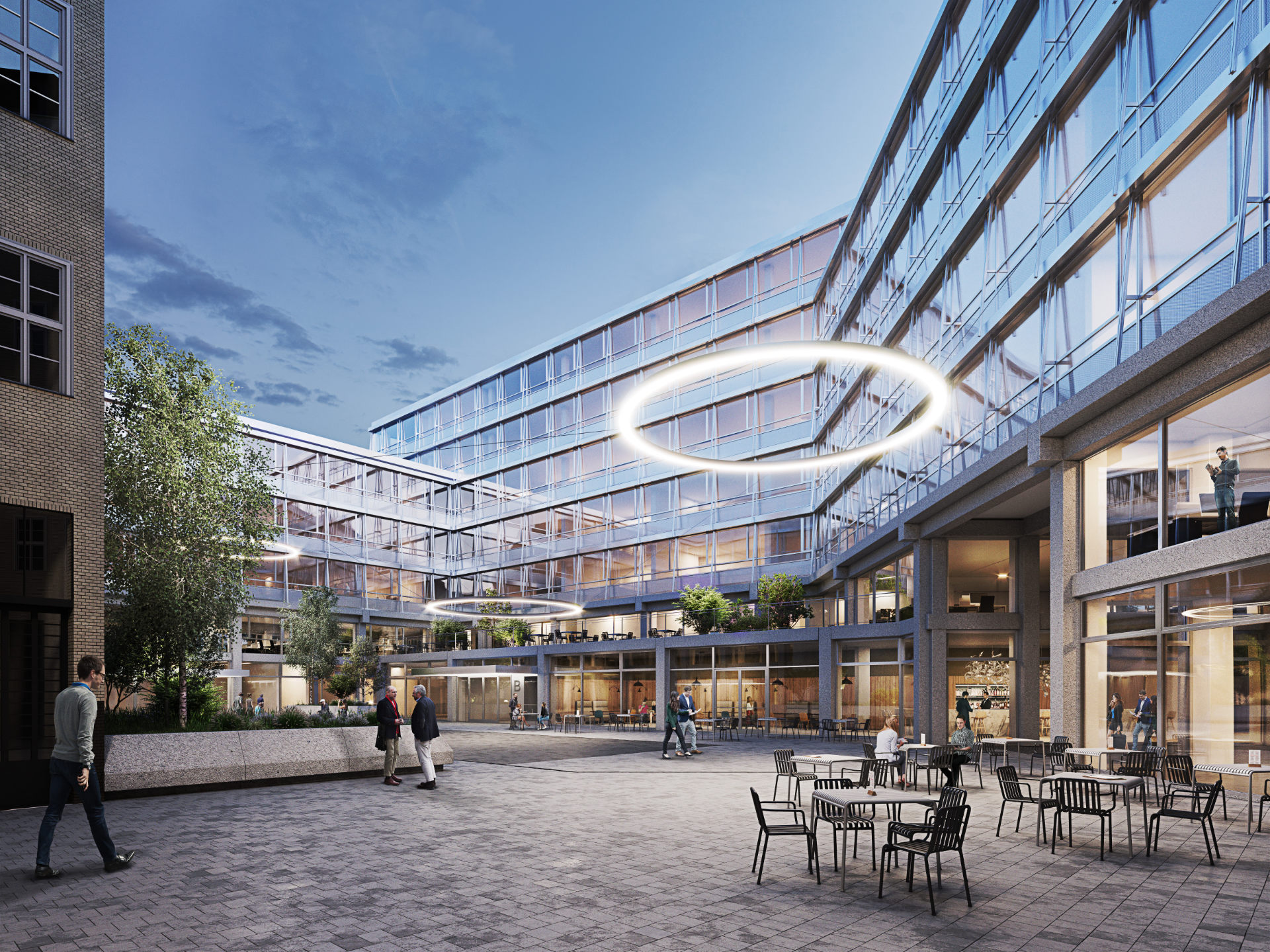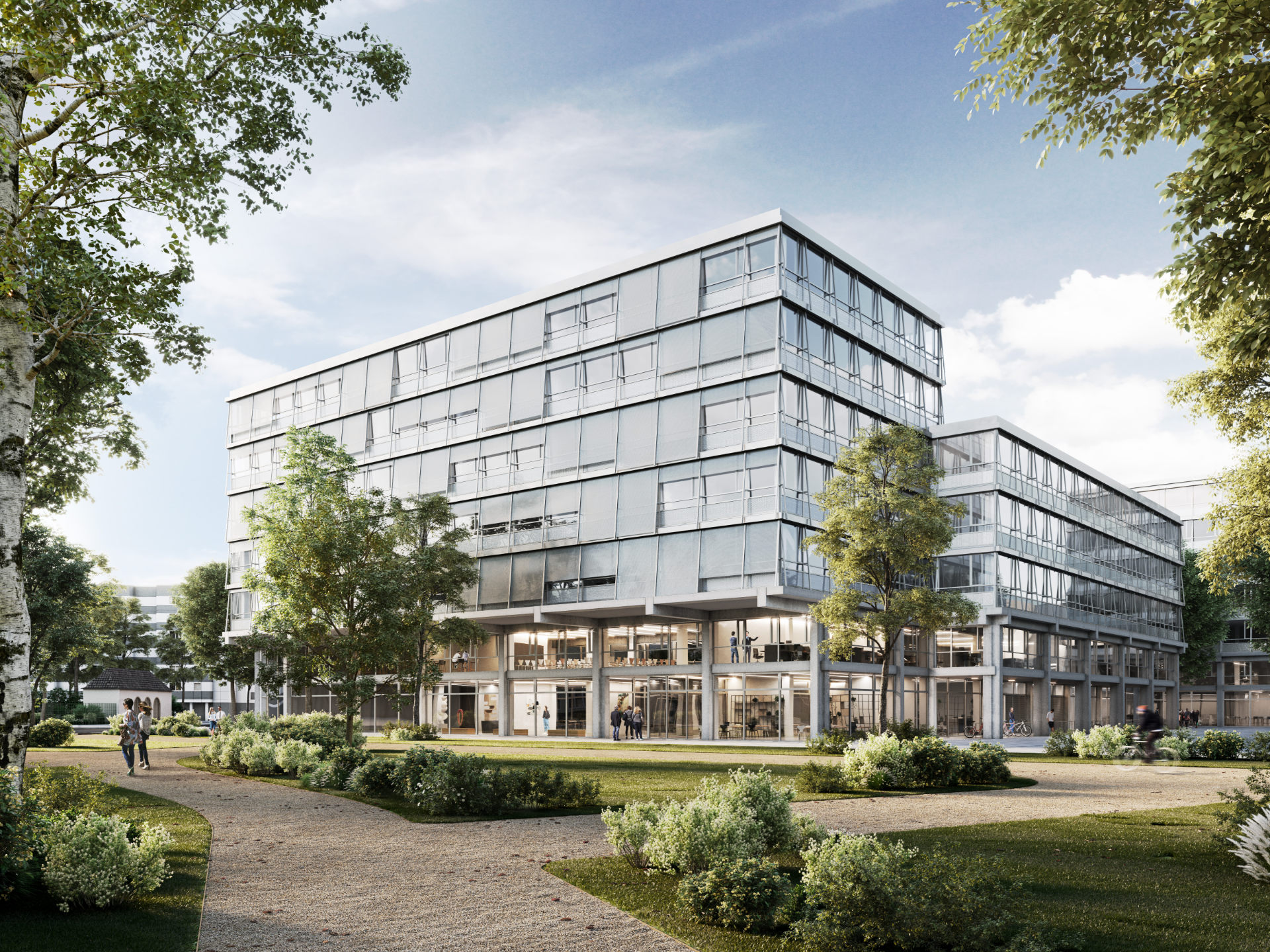 According to the architectual concept with campus-character a versatile use of the office areal is planned – for start-ups as well as big businesses. This diversity is clearly recognizable in the interior visualizations.