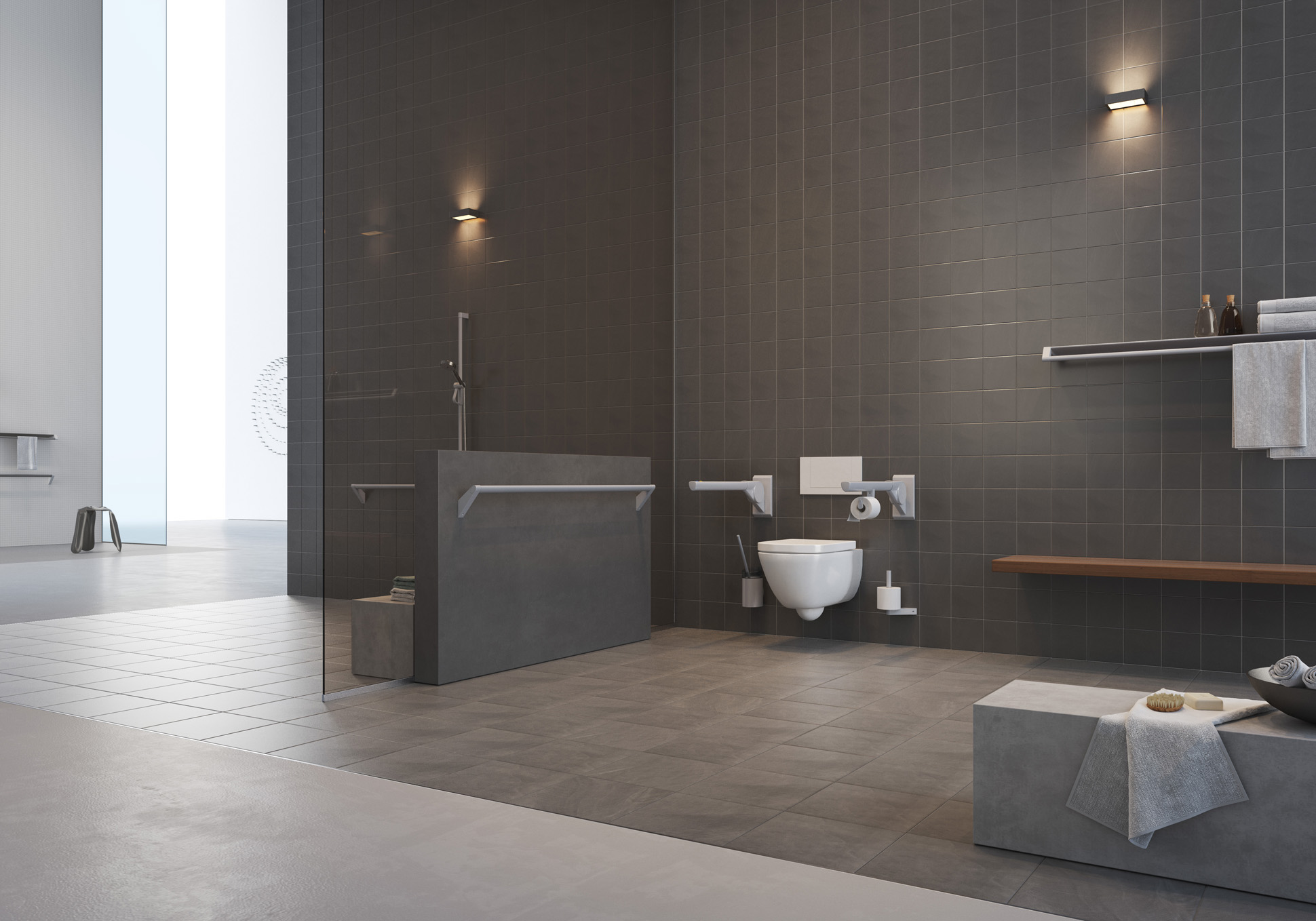 With the ErgoSystem A100 FSB presents an supremely wide range of products around barrier-free living in the private and public sectors. The guiding theme of the spatial configuration was based on the idea of a airy and generous showroom.