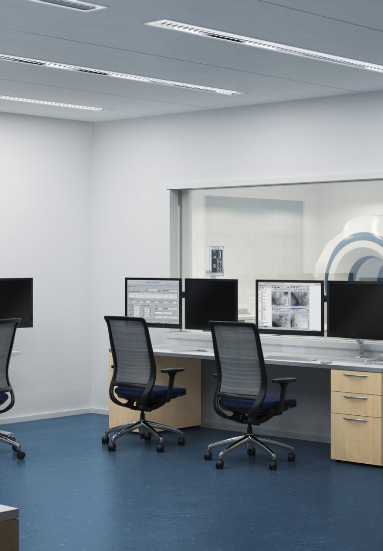 Apart from the Kimball furnishing we created a lot of specific objects illustrating the medical context: from CT and organ preparations to clipboards – its all in there.