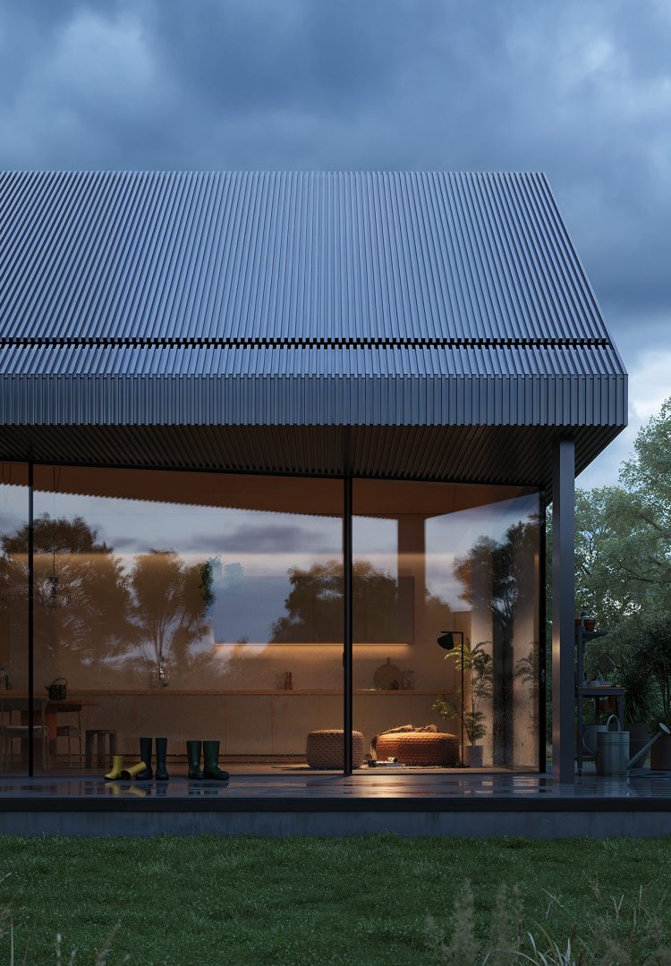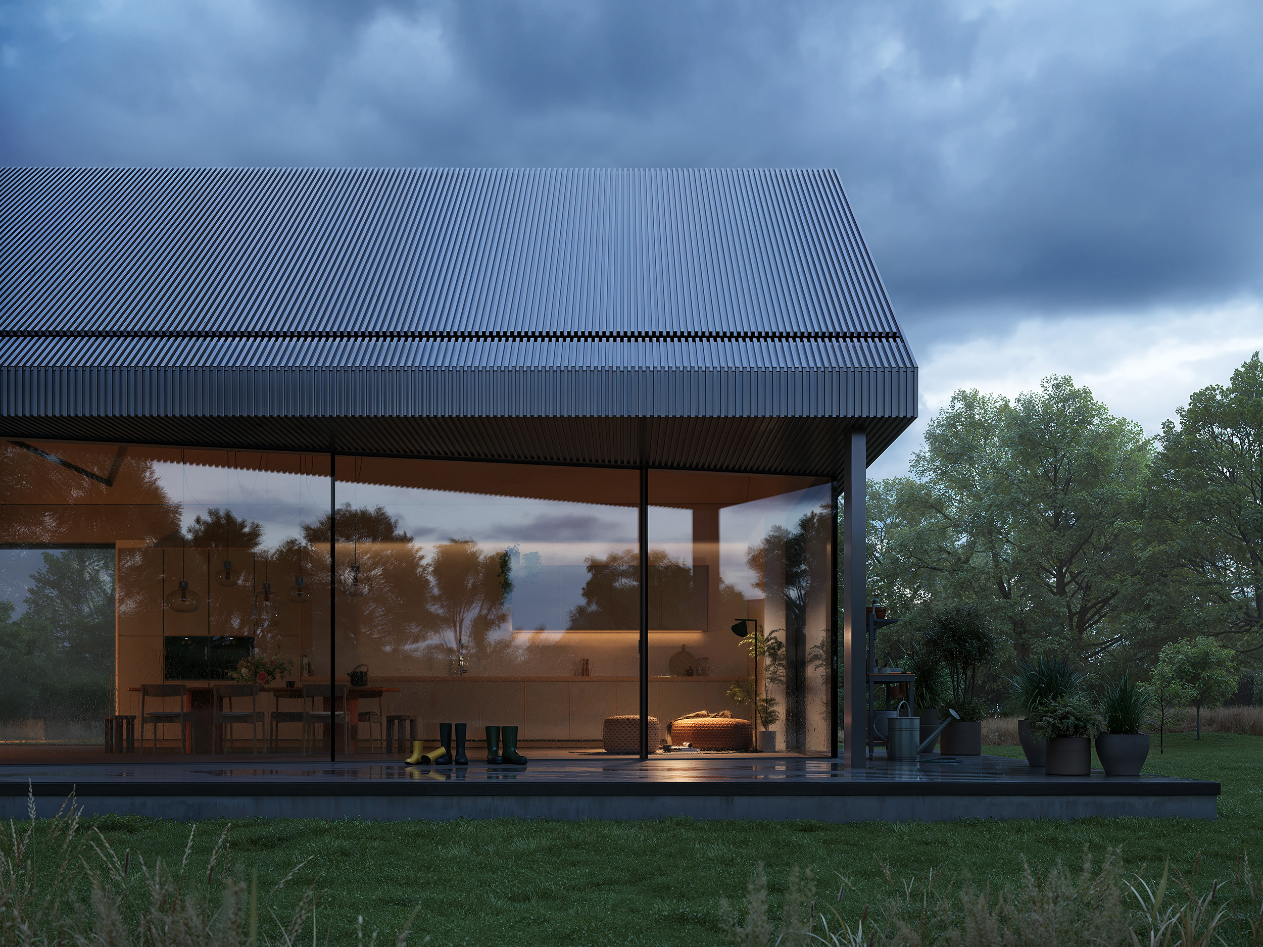The sliding door system Cero IV by Solarlux amazes through its ultimate perfectionism in form and utmost reduction allowing spectacular views into the surrounding setting. To do this, we conceived another virtual set featuring a weekend retreat reflecting the high architectonic standards of the german premium manufacturer.