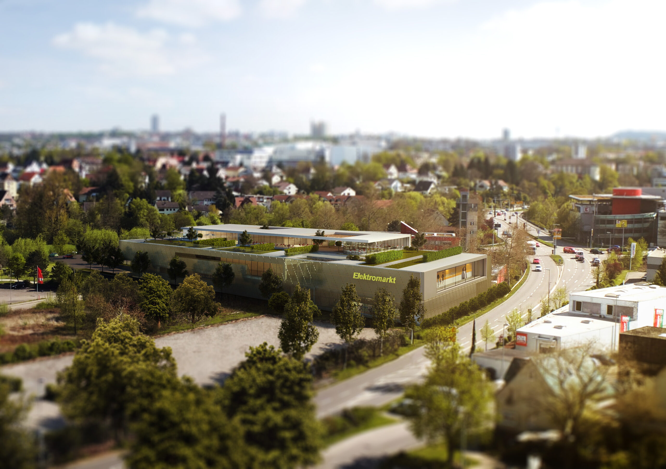 The Bietigheim shopping center is an honest, straightforward architectural project of clear lines designed by ARP – architects. To show the distinction of the bright, open interior retail space and the clear architectural approach, we decided to show the proposal in an evening hour in a vibrant light situation. We are happy that we could contribute to this competition entry which made first price with our sunset illustration.