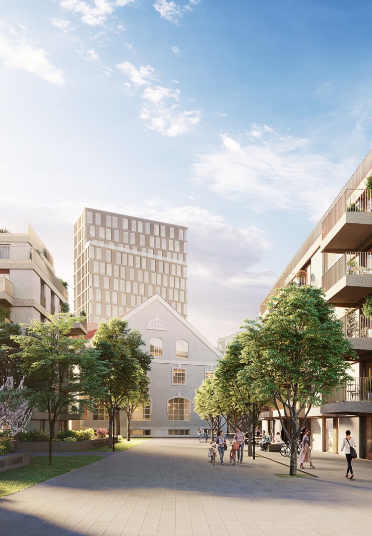 Mit der denkmalgeschützen Kuvertfabrik als Herzstück entsteht ein Stadtquartier der Zukunft. Das Quartierskonzept fokusiert nachhaltige Werten, innovative Mobilitätskonzepte und bietet neben privaten auch halb-öffentliche gemeinsschaftliche Flächen: Raum für Vielfalt und Lebensqualität.