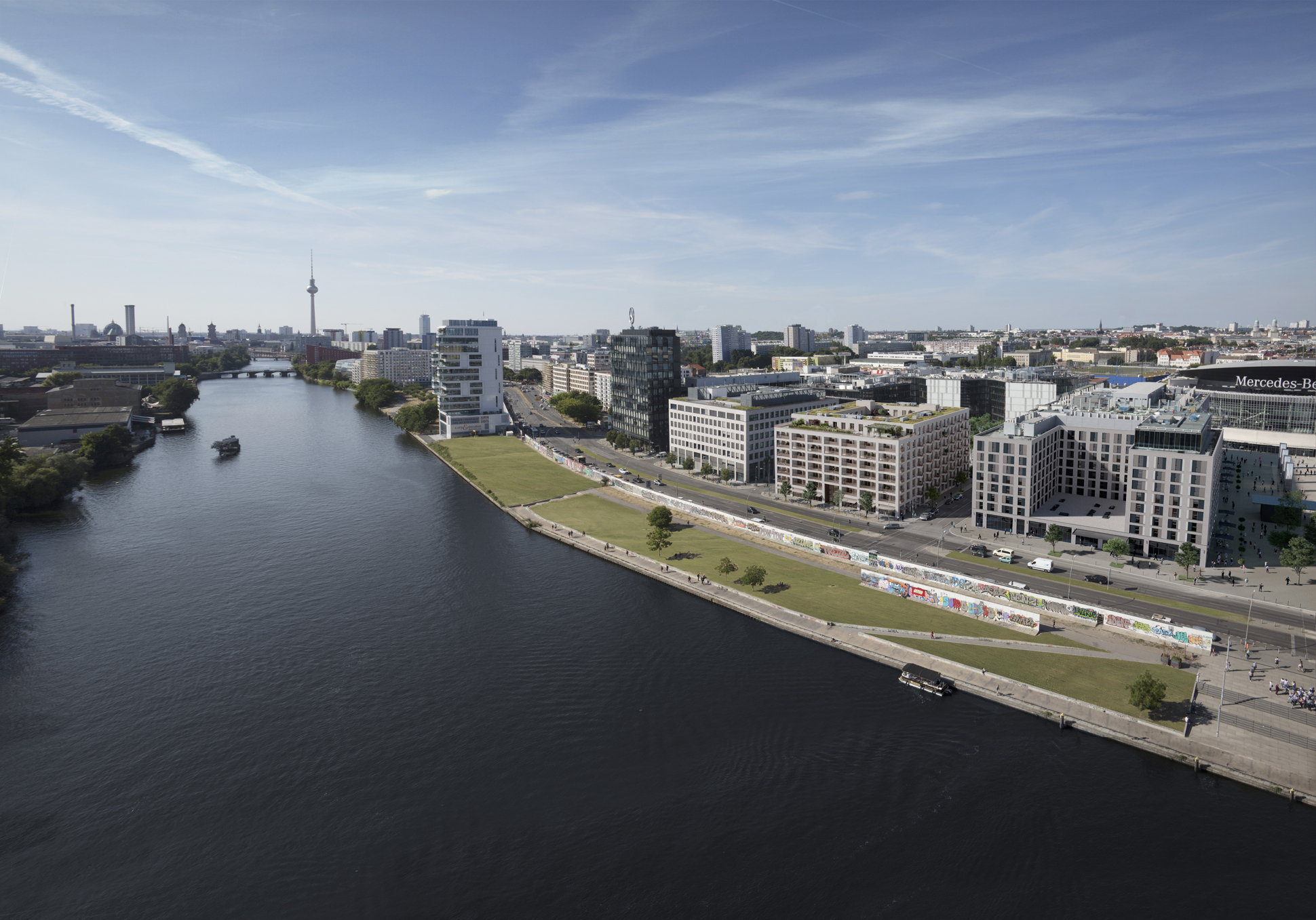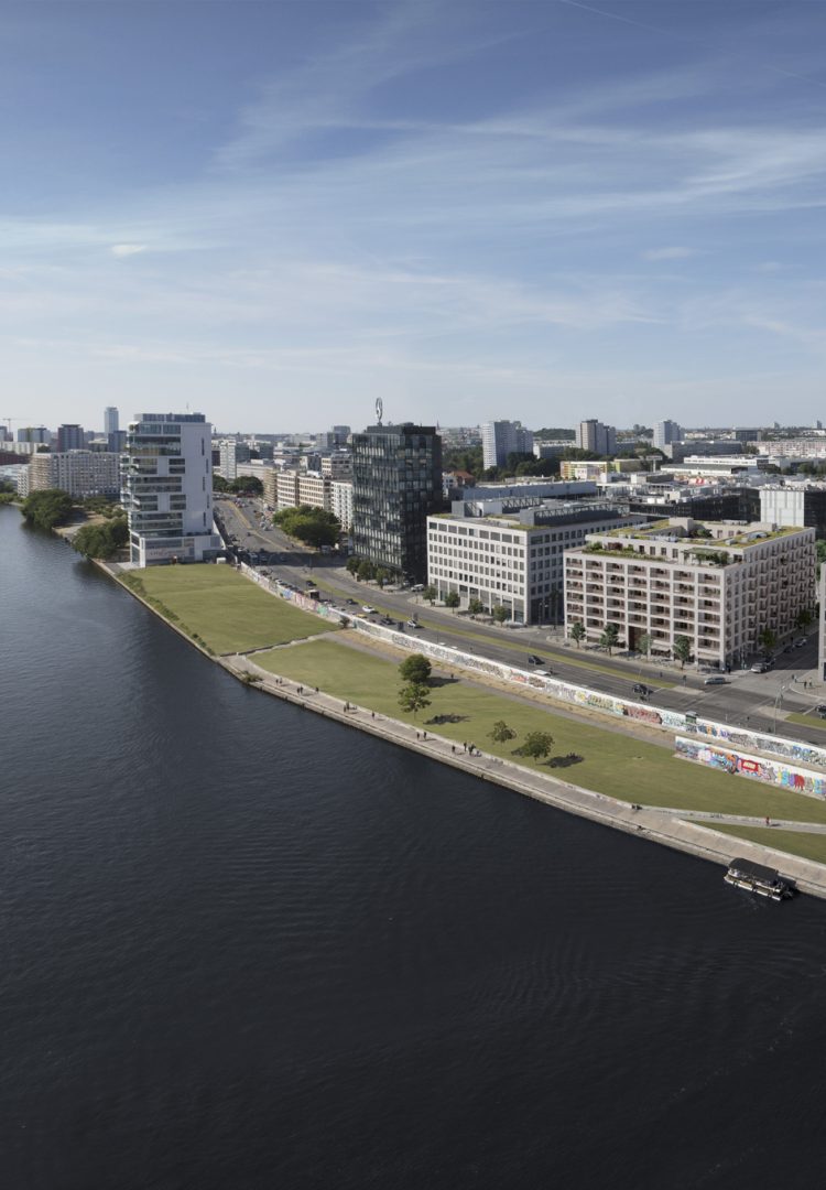 Für den Entwurf des Neubaus an der Spree, eingebunden in das Mercedes Benz Areal, zeigt sich das Architekturebüro Hemprich Tophof verantwortlich. So finden wir hier neben East Side Gallery, Spreeufer und Citynähe eine klare und sachliche Architektursprache, die mit hochwertigen Materialien, zurückgenommenen Details und grünen Rückzugsorten im Innenhof, Urbanität und gleichzeitig hohe Wohnqualität anstrebt.